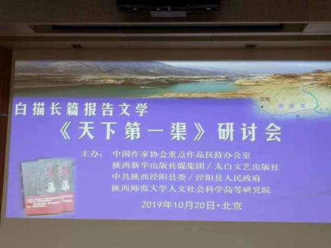 10月20日,由中国作协重点作品扶持办公室、陕西新华出版传媒集团/太白文艺出版社、中共陕西泾阳县委、泾阳县人民政府、陕西师范大学人文社会科学高等研究院共同主办的白描长篇报告文学《天下第一渠》研讨会在北京举行。