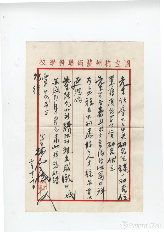 …承介郎鲁逊君来校,得诵惠书…敝校雕塑教授业经聘得俄人卡孟斯基及刘开渠君担任,刘君不久即将归国,该班课程现由俄教员代授,其余教课均经聘定有人,亦无添聘教员之必要…容得机缘再当延揽…