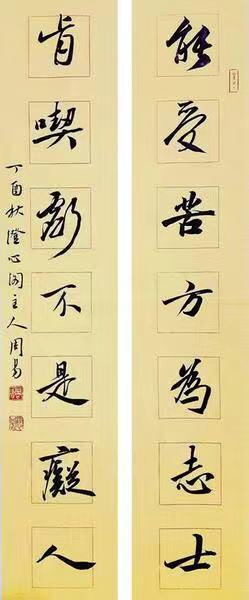 二 世上素无偶然的成功,正所谓“梅花香自苦寒来”。周易现今能有如此纵横捭阖的书写境界,有赖于他的豪情壮志与发奋磨砺。 为便于叙述,且允许笔者将镜头回溯到二十六年前。 彼时的周易年方十六,血气方刚,在读初三,他的历史老师是位刚从师范校园踏上教坛的小伙子,非但记忆力超群,课讲得条理清晰,还写得一手隽秀的行书,这让周易羡慕不已。更幸运的是,同村书法家周杰得知他喜欢书法,给予了他许多启蒙指导与热情鼓励,使他从此对书法的喜爱一发而不可收。并暗下决心,这辈子非要把汉字书写好,从大里讲,必须传承与弘扬中国传统文化之精髓,往小处说,修身养性,陶冶情操。素朴的念头一旦被当真了,便无异于给梦想插上了翅膀,于是,他夜以继日地练习起来,往往通宵达旦。 一周后,他忐忑地把自己涂鸦的字拿给老师看,出乎预料,老师竟褒奖他写得不赖。极其平常的一句话,对常人或许无足轻重,可对周易而言却不啻是莫大的鼓舞,从此他正儿八经开启了习书生涯。他跑到镇上买了本字帖,跟父亲要来许多旧报纸,只要一有空闲,便操起笔来书写。 村里乡邻见他着迷写字,有人挖苦他,有人揶揄他,更让他匪夷所思的是,父母亲看他整天“不务正业”,也竭力阻止他再练字。 不久,他到村里的小学当了教语文的代课老师,一干十年。期间,他从没停歇过练习,而是更勤奋刻苦了。结婚后不多时,妻子望着他“走火入魔”的样子,亦考虑到当时家庭经济极度拮据,心疼笔墨纸张的开销,气不打一处来,为彻底断绝他有空就与笔墨为伍的念头,有一天竟悄然地将他所有的毛笔都扔得不知所踪。他得知后轻描淡写地说了句,你这是何苦,却依然没能撼动他追梦的执念。 村里的父老乡亲中,有文化的倒不乏其人,可除了周杰,没其他人研习书法,周易便以帖为师,每日坚持临习,经年不辍,颜体,柳体,欧体,乃至魏碑、隶书,都不厌其烦地临摹。 在周杰的细心指点下,至1998年时,周易的书艺大有长进,恰逢其时,安徽省举办第四届书法新人展,初生牛犊不怕虎的他鼓足勇气,将一幅魏碑体楹联投稿过去参加竞选。时隔两月,他居然接到了其作品入展的喜报,那一刻,他简直不敢相信自己的眼睛,待再次确认无误后,他欣喜得差点蹦跳起来。藉此,他顺理成章荣升为省书法家协会会员,令村邻们刮目相看,争相赞佩。