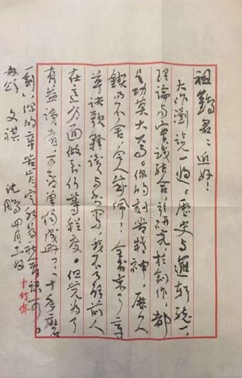 释文: 你的大作浏览一遍,历史与逻辑统一,理论与实践结合,于研究,于创作,都是功莫大焉。你的刻苦精神,历久锲而不舍,令人感佩!全书末了章草诀歌释读与书写,我不了解前人在这方面做到何种程度,但觉为了有益读者,可否单独成册?十年磨一剑,你的辛苦肯定能为社会认可。 匆颂 文琪 沈鹏 四月十一日 编辑:张瑞琪 |