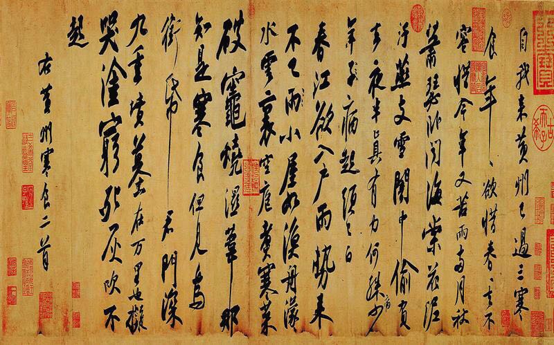 《寒食帖》又名《黄州寒食诗帖》或《黄州寒食帖》。墨迹素笺本,横34.2厘米,纵18.9厘米,行书十七行,129字,现藏台北故宫博物院。黄州东坡赤壁管理处存有长达7.3米的《寒食帖》卷轴复制品。 苏轼(1037-1101)字子瞻,号东坡居士,四川眉山人,苏洵长子。北宋嘉祐二年(1057)进士。神宗时曾任祠部员外郎,知密州、徐州、湖州,因反对王安石新法,以作诗谤讪朝廷罪谪黄州,哲宗时任翰林学士,曾出知杭州、颖州,官至礼部尚书,后又谪贬惠州、儋州(海南岛),最后北还,病死常州,追谥文忠。与父洵弟辙合称三苏;与唐代的韩愈、柳宗元,宋代的欧阳修、苏洵、苏辙、王安石、曾巩合称唐宋八大家;与黄庭坚、米芾、蔡襄并称宋四大家。 《寒食帖》的内容是1082年苏轼因宋朝最大的文字狱“乌台诗案”被贬谪黄州的第三年,于寒食节作的两首寒食诗。黄庭坚在此诗后跋:“东坡此诗似李太白,犹恐太白有未到处。此书兼颜鲁公、杨少师、李西台笔意。试使东坡复为之,未必及此。它日东坡或见此书,应笑我于无佛处称尊也。” 明代大书画家董其昌题曰:“余生平见东坡先生真迹不下三十余卷,必以此为甲观。” 清高宗:“苏轼黄州诗帖。长春书屋鉴赏珍藏。神品。” 《独醒杂志》卷三中记载了苏轼和黄庭坚之间一段风趣的对话:“东坡曰:‘鲁直(黄庭坚字)近字虽清劲而笔势有时太瘦,几如树梢挂蛇。’山谷曰:‘公之字固不敢轻论,然间觉褊浅,亦甚似石压虾蟆。’二公大笑,以为深中其病。”黄庭坚喜悬腕书写,其字正如东坡所言,结字过于狭长;而东坡严守古法,定腕书写,其字古朴典雅、韵味十足,起伏跌宕,迅疾而稳健,痛快淋漓,一气呵成。苏轼将诗句心境情感的变化,寓于点画线条的变化中,或正锋,或侧锋,转换多变,顺手断联,浑然天成。其结字亦奇,或大或小,或疏或密,有轻有重,有宽有窄,参差错落,恣肆奇崛,变化万千。苏轼曾说:“我书意造本无法,点画信手烦推求。”又说:“天真烂漫是吾师。”实为此卷的写照。 青年诗人张凯题苏轼《黄州寒食诗帖》后两首: 其一 子瞻师法李西台,冤狱哪知百事哀? 山谷题跋今尚在,不如西席复归来。 其二 东坡居士最清真,挥翰若飞思入神。 飘泊他乡谁借问,诗书合璧候来人。 《寒食帖》原文: “自我来黄州,已过三寒食。年年欲惜春,春去不容惜。今年又苦雨,两月秋萧瑟。卧闻海棠花,泥污燕支雪。暗中偷负去,夜半真有力,何殊病少年,病起头已白。”“春江欲入户,雨势来不已。小屋如渔舟,濛濛水云里。空庖煮寒菜,破灶烧湿苇。那知是寒食,但见乌衔纸。君门深九重,坟墓在万里。也拟哭途穷,死灰吹不起。” 薛鑫/整理 编辑:慕瑜 |