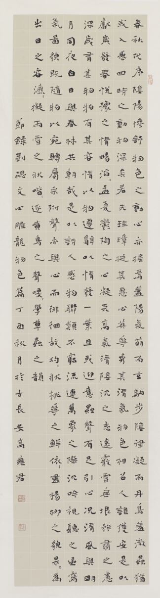 持之以恒,在自信基础之上的自我批评是必须的。只有不断否定自己,才能有一个新的“自我”。道法自然,是一切艺术遵循的规律。 自在放松的书写,是在理性指导下的感性书写,心灵的纯粹是对个体生命的观照。个性是建立在共性基础上的个性,气韵生动建立在骨法用笔的基础之上,书法是一次性书写为特征的艺术,最深刻的美来自有情的锤炼! 书法家的“法象”,是变形,是隐形,是风骨,是气象,是书法家整体美学素养的结晶体和艺术功力的坦露。许多书品,或崇高,或峻拔,或雍容,或恬淡,或怡然,或艳丽,或纤秀,或脂粉,不同风格和意味的存在形式都出来了,于是给予读者以不同的感染。