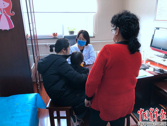 李爱儒在为一位4岁的患儿诊疗。