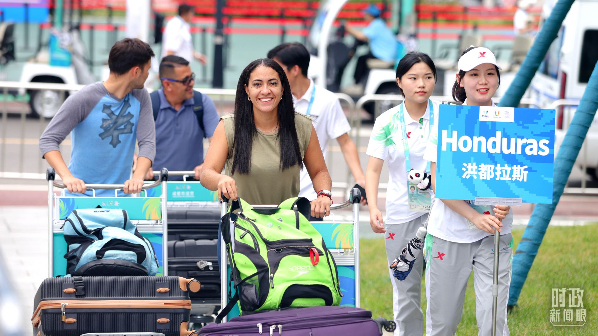 △各国代表团成员相继抵达成都大运村。(总台央视记者魏帮军拍摄) 体育强则中国强,国运兴则体育兴。党的二十大报告提出,广泛开展全民健身活动,加强青少年体育工作,促进群众体育和竞技体育全面发展,加快建设体育强国。 作为党的二十大之后率先举办的重大国际体育赛事,成都大运会和接踵而至的杭州亚运会,都将在体育强国建设进程中标注鲜明的刻度。