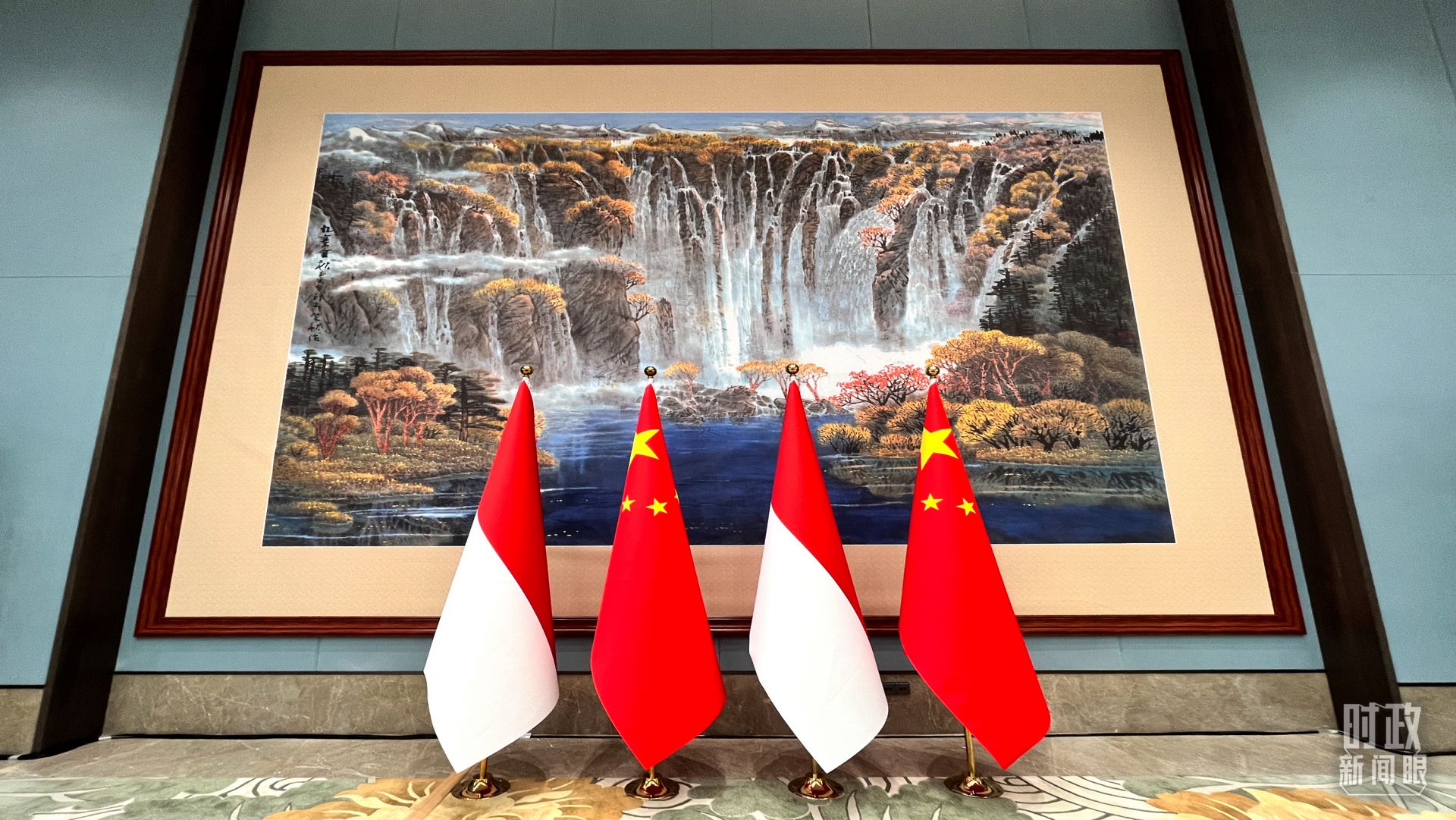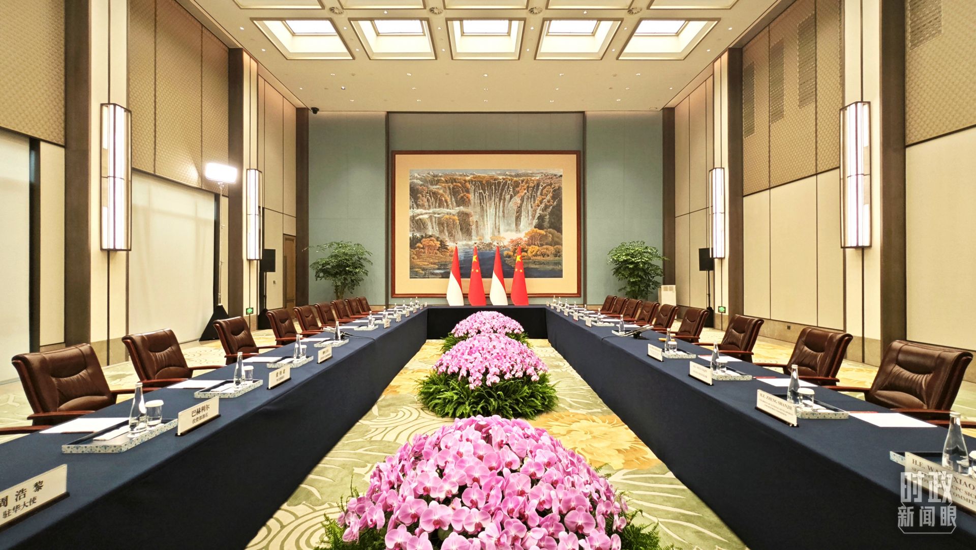 △中印尼两国元首在这里举行会见。这是会见开始前的场景。(总台央视记者许永松拍摄) 二是习主席提出建设更为紧密的中国-东盟命运共同体10周年。今年东盟轮值主席国正是印尼。习主席在会见时说,中方愿同东盟深化全面战略伙伴关系,支持印尼担任今年东盟轮值主席国,引领东盟坚持战略自主、团结自强,共同打造地区稳定中心、发展高地。