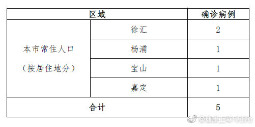 2020年2月3日12—24时,上海市排除新型冠状病毒感染的肺炎疑似病例35例;新增确诊病例5例,其中1例重症。新增确诊病例均为本市常住人口。具体情况如下: