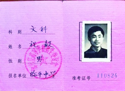 1977级考生准考证,持有者现为杭州浙江大学校友会副会长。(资料图片)