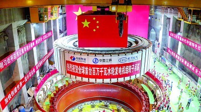 白鹤滩水电站首台百万千瓦水轮发电机组转子吊装。三峡集团供图 编辑:慕瑜相关推荐: