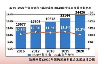 2016—2020年我国研究与试验发展(R&D)经费支出及其增长速。(数据来源:2020年国民经济和社会发展统计公报) 编辑:慕瑜相关推荐:
