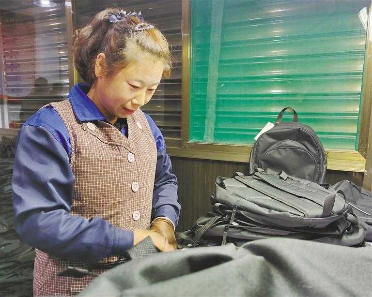 在铜川市耀州区关庄安置区扶贫工厂,工人正在检查背包质量。 编辑:慕瑜相关推荐: