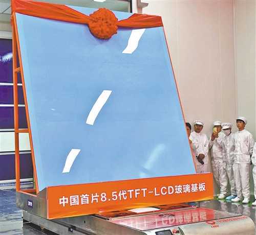 中国建材生产的中国首片自主研发8.5代液晶玻璃基板。(资料图片)