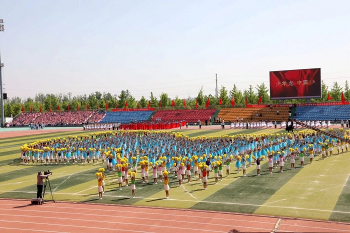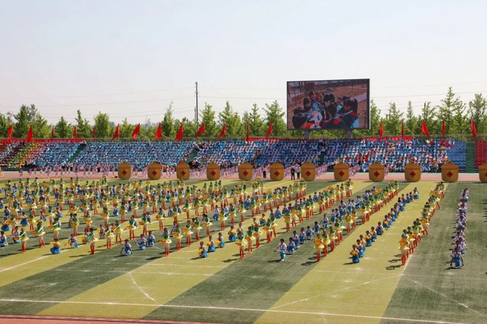 大荔县代表队 随后,来自大荔县实验小学、学门前小学、城关初中、第二实验小学、荔东小学、洛滨小学、洛滨初中等学校为大家带来了团体操、武术操、情景表演等大型文体表演。