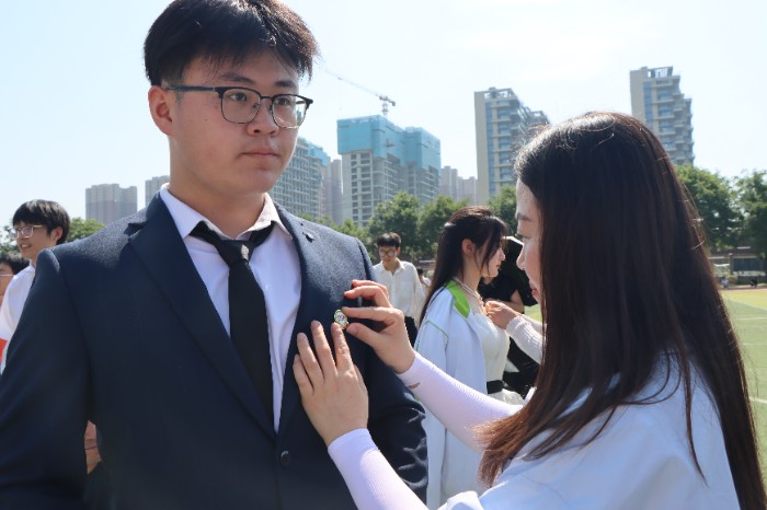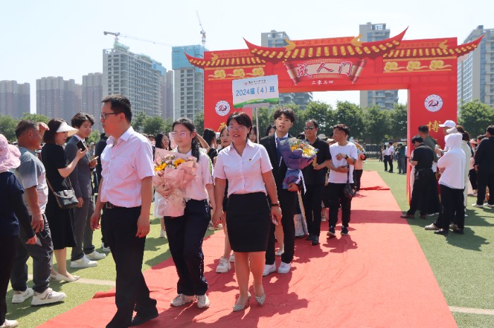 第七项,穿过“成人门”,投递“心愿卡”。伴随着铿锵激昂的音乐,在校领导和班主任的带领下,同学们列队前行,与家长携手穿过成人门,将心愿卡投递到心愿箱。跨过成人门,与成熟稳重相约,开始青春的征程,以责任履行使命,以青春之我开辟崭新的未来。 为促进本次活动的顺利进行,学校不仅设置临时医疗服务站点提供全程医疗服务保障,还为前来的小朋友准备了丰富的糖果,现场欢声笑语,其乐融融。 鹰击天风壮,鹏飞海浪春。2024届杜中学子将以“鲲鹏久有凌云志,天道酬勤佳音来”的信心和决心,劈波斩浪,不负可为时代,争做有为青年;只待天风起,海浪翻,以雄鹰之姿搏击长空,以鲲鹏之志踏浪而起,以铿锵战歌凯旋六月!