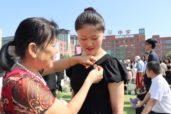 家长们为孩子佩戴好纪念章,这枚小小的纪念章不仅是对他们成长的见证,更是对他们未来的祝福和期许。同学们向父母鞠躬,深情拥抱,感谢父母多年来的辛勤付出与无私奉献。 同学们从班主任的手中接过《中华人民共和国宪法》的同时也接过了沉甸甸的责任与担当。十八岁意味着要履行公民义务,牢记社会责任,以公民之名义担负起服务人民、服务社会、服务国家的重任。同学们深情地为自己敬爱的老师献上精心准备的鲜花,感谢老师三年的陪伴成长,朝夕相伴,在生命中重要的时刻指引方向。