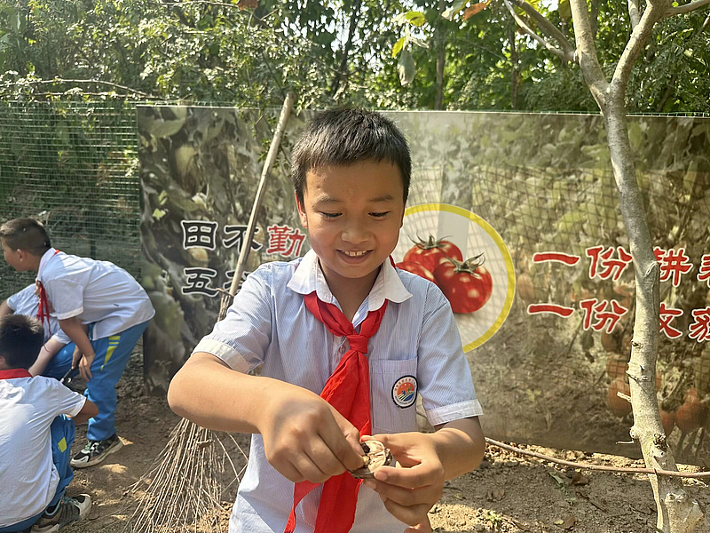 随着时间的推移,同学们的劳动成果逐渐显现。果园里的杂草和落叶都被清理干净,大豆、核桃、辣椒等作物的收获也让孩子们感到无比的自豪和满足。