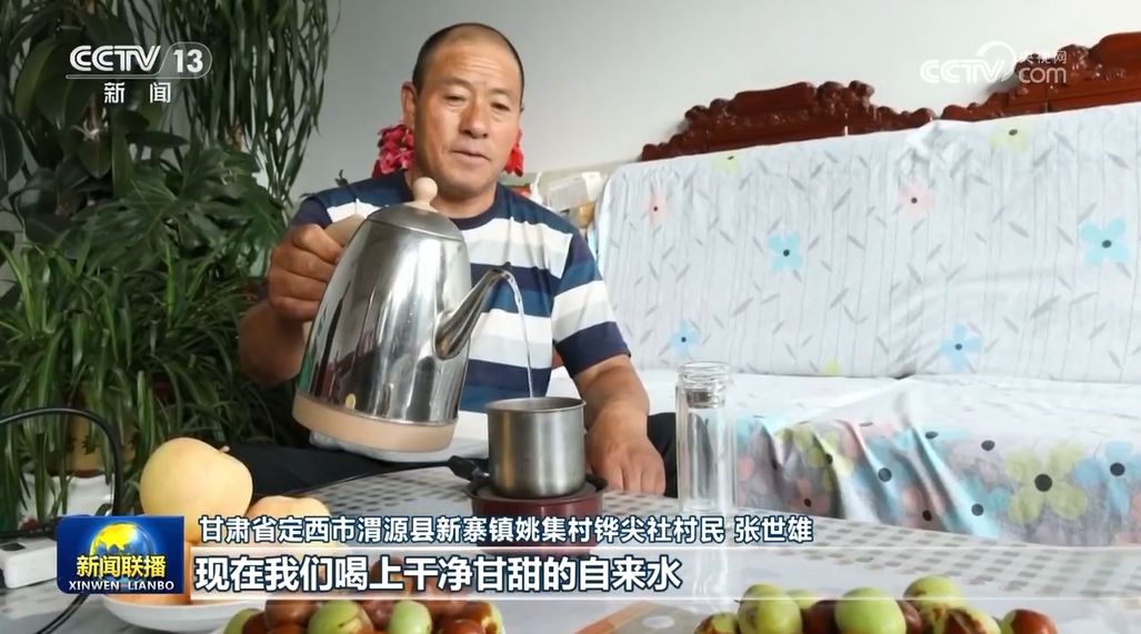 点击图片观看视频 央视网消息(新闻联播):洮河,从甘肃、青海两省交界处奔流而来,却因崇山阻隔,与“十年九旱”的陇中地区擦肩而过。“引洮河水,解陇中渴”是几代甘肃人的夙愿,也是习近平总书记放心不下的牵挂。在引洮供水工程建设过程中,总书记十分关心,提出要求,推动项目建设。如今,引洮供水工程一座座水库、一道道管网,润泽陇中大地,惠及600万百姓。 金秋十月,甘肃定西渭源县姚集村一派丰收景象。可在十年前,缺水让这里土地贫瘠,村民都是靠水窖存下的雨水和苦咸水生活。