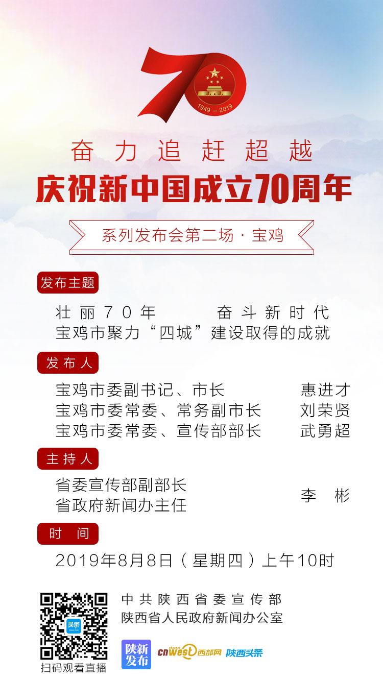 陕西“奋力追赶超越 庆祝新中国成立70周年”系列发布会·宝鸡篇 来源:陕西头条 作者:编辑 时间:2019-08-08