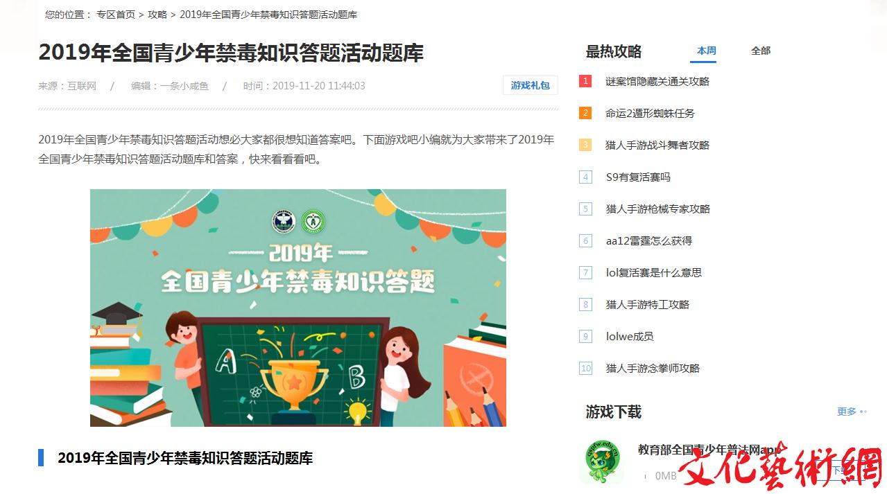 文化艺术网-文化艺术报讯(通讯员 曹锋 郭慧敏) 12月5日下午,延安炼油厂子校组织高段学生在计算机教室开展“全国青少年毒品预防教育平台”2019年禁毒知识答题活动。