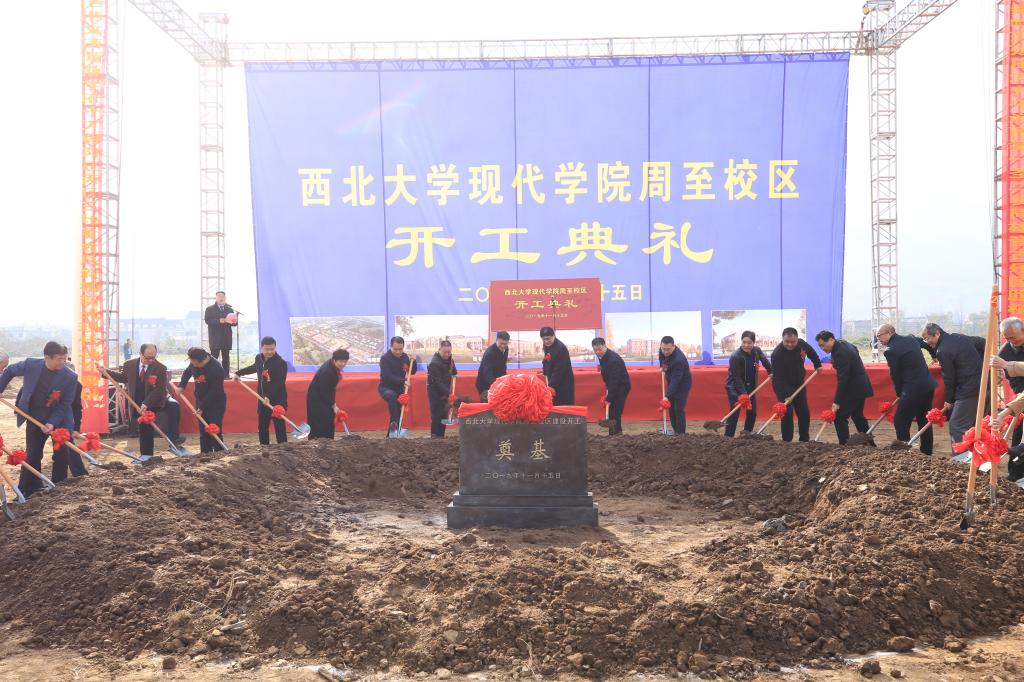 随后,周至县委副书记、县长陈旭辉宣布周至校区开工。各领导嘉宾在周至校区开工典礼签名墙上签名,并为西北大学现代学院周至校区培土奠基。