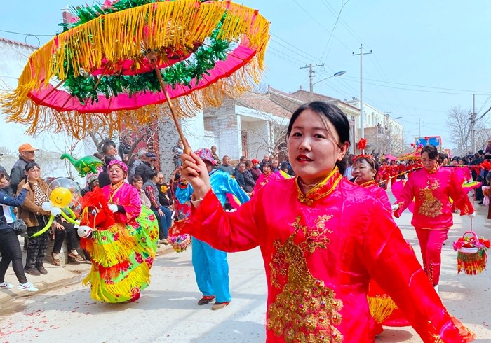 张家村支部书记何志锋介绍,张家村处在十里奓村的中心位置,人民群众发展红枣、黄花菜、花生、芦笋等特色产业致富后,举办古会热情高涨,从先一天(二月十四)踔路扫场子开始,耍社火、闹芯子要连续三天。村上把古会当文化名片来打造,群众踊跃参加,要人有人、要物给物,有力出力、有钱出钱、有车出车,特别是有些年龄大的老人,积极参与闹社火,擦胭涂粉、穿红戴花,敲锣打鼓、尽情嬉耍,整个人的精神面貌焕然一新。古会期间,村里家家如同过年办喜事,纷纷备下酒席、油桶底等美食招待亲朋好友,尽显张家人的淳朴厚道、热情好客。街道上的各个门面也是生意兴隆,农副产品销售火爆,耍社火、闹芯子的古庙会彰显了百姓的精气神,有效拉动了新经济。