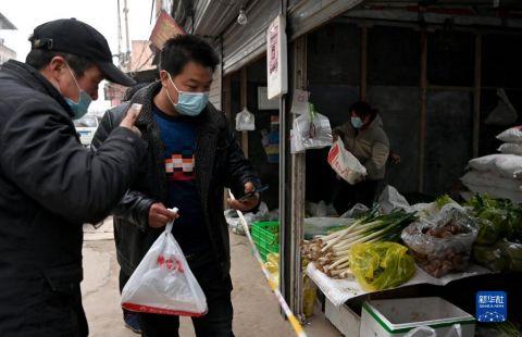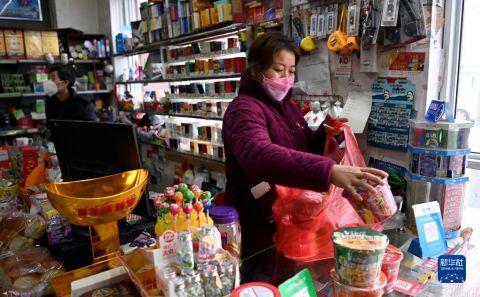 1月7日,西安市未央区西唐寨村村民在购买食品。 新华社记者 刘潇摄