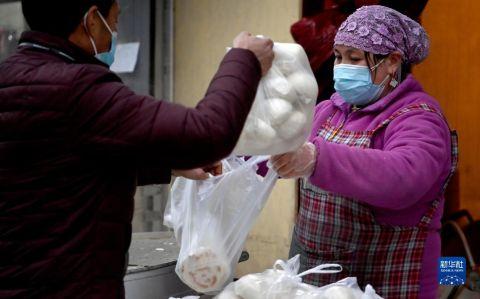 1月7日,西安市未央区西唐寨村村民在村里的馒头店买馒头。 新华社记者 刘潇摄