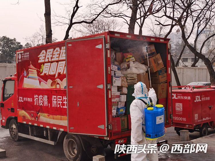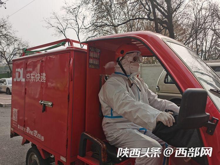 京东物流西北区西安兴庆宫营业部小哥正在送货 京东小哥复工第三天:“全副武装”进行无接触配送 下午3点,在京东物流西北区西安兴庆宫营业部,京东快递小哥肖小创“全副武装”,正在对包裹进行消杀。从1月10日京东物流在西安符合防疫管理标准的区域开通配送服务起,他已经复工复产第三天了。 肖小创说,京东物流采取全过程无接触配送。“京东仓储环节,所有物流工作人员统一装备二级防护标准,纸箱包裹要将六个面逐一消杀,确保360度无死角。所有转运车辆无论是外部、轮胎还是驾驶室都要全方位消杀。”