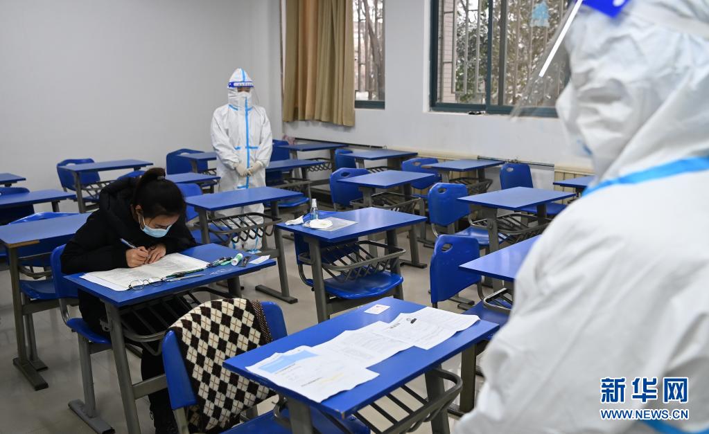 在2022年全国硕士研究生招生考试西安外国语大学考点隔离考区,监考人员在单人隔离考场监考。考试中,监考人员全程着防护服工作,学生午休时不出考区,学校为每名考生提供免费午餐。各方全力以赴为考生“保驾护航”,确保考试顺利进行。新华社记者 刘潇 摄 2021年12月24日,全国研究生招生考试的前一天,西安建筑科技大学、西安胸科医院工作人员,连夜为李强设立了一间特殊的考场,全程录像,远程指挥,确保他顺利参加完考试。这一幕感动了无数网友,“全城都在努力,不漏过每一个为梦想努力的学生”。 作为研究生考试考点的西安外国语大学提前部署,对考场内外进行全面消杀,为隔离考生送考上门,确保考生应考尽考;西北大学紧急成立党员教师干部突击队,26名党员教师考试当天一早出发,领取试卷,为7名集中隔离考生送考上门;西安交通大学组织800余名疫情防控志愿者,为考生提供路线引导、核酸检测引导等服务;长安大学为所有考生配发了N95口罩和洗手液,确保考生每天进行核酸检测、按照固定线路活动,彼此无交叉……西安各高校与时间赛“考”,多措并举做好研考保障和服务工作,筑牢抗疫防线。 疫情下的2022研究生考试,必将成为每名考生难忘的记忆。愿每一份考生默默的付出都有回报,每名考生都能记住为了这次特殊的考试,所有付出努力的抗疫英雄。 全民动员 众志成城 共克时艰 本轮西安疫情发生以后,党中央、国务院高度重视,十分关心西安人民的生命健康,按照党中央、国务院部署,国家卫健委第一时间派出工作组,指导西安疫情防控工作。 面对突发疫情,陕西省委、省政府高度重视,坚决遏制疫情蔓延扩散势头,全力保障人民群众生命安全和身体健康。为全力保障打赢疫情防控阻击战,陕西省财政厅紧急动用预备费1亿元用于疫情防控。中央组织部从代中央管理党费中给陕西省西安市划拨专项资金2000万元,用于支持开展新冠肺炎疫情防控工作。 陕西省委书记刘国中、省长赵一德靠前指挥,持续每天在西安市疫情防控指挥部调度部署疫情防控工作。陕西省和西安市委组织部发出号召,要求机关干部和直属企业45岁以下年轻干部统一下沉到社区,参与一线防疫工作。