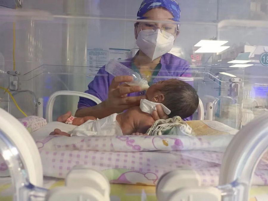 2斤-6斤,22天的日夜守护 1月24号,是小宝(化名)出院的日子。 被医护“妈妈”抱在怀里,小宝可可爱爱、粉粉嫩嫩、白白胖胖,已经6斤多重了。 还记得小宝刚出生时,因为早产(孕28周,正常新生儿分娩为37周-42周),体重只有800g,不到2斤,皮肤都是“皱皱巴巴”的。1月2日那天,小宝从外院来到大兴新生儿科,继续接受治疗,转来时体重2200g。 支气管肺发育不良、离不开氧气、不停哭闹、喂养费劲......30毫升的奶中间停顿3到4次才能吃完,小宝真是使出了“吃奶劲”,也“忙坏了”医务人员。 治疗、护理双管齐下,通过药物精准干预;采用45°卧位喂养,减少胃食管返流,2-3小时喂一次,一次喂奶长达20多分钟;用小面罩拍背,轻轻地,一下、两下、三下......10分钟就过去了;口腔运动干预、锻炼吞咽呼吸协调能力...... 几天后,小宝哭闹减少,吃奶也没那么费劲了。小宝住院期间,主管医生苏芬玲给小宝的爸妈持续“上传更新”着小宝的日常。 “好胖了啊!”看来小宝父母对这种“云养娃”的方式很放心。